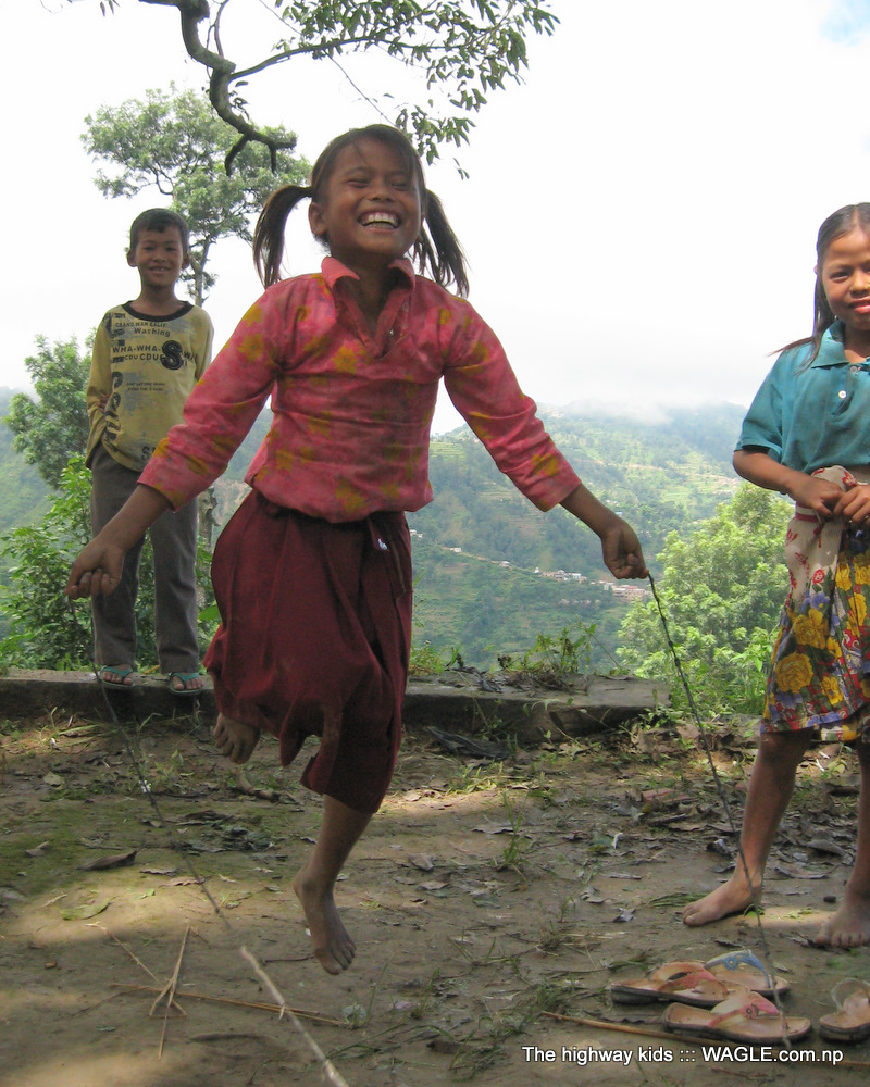 highway kids of nepal playing skipping
