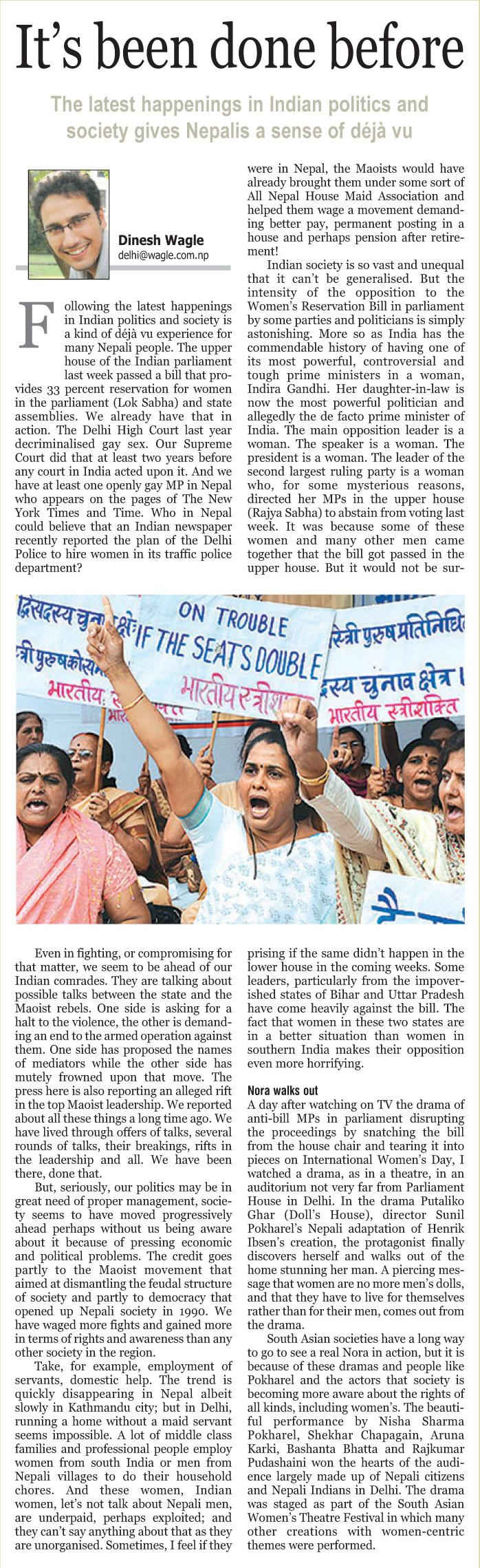 Its a matter of proud to all Nepalese people to hear that some laws and policies of Nepal are better than those of other more developed country like India.While reading and hearing the negative comments of the various issues of Nepalese politics and other events, it is a very good news for Nepalese to read such a positive and passimistic comment. Thank You Dinesh for such trend of exploring positive sides of Nepali politics.