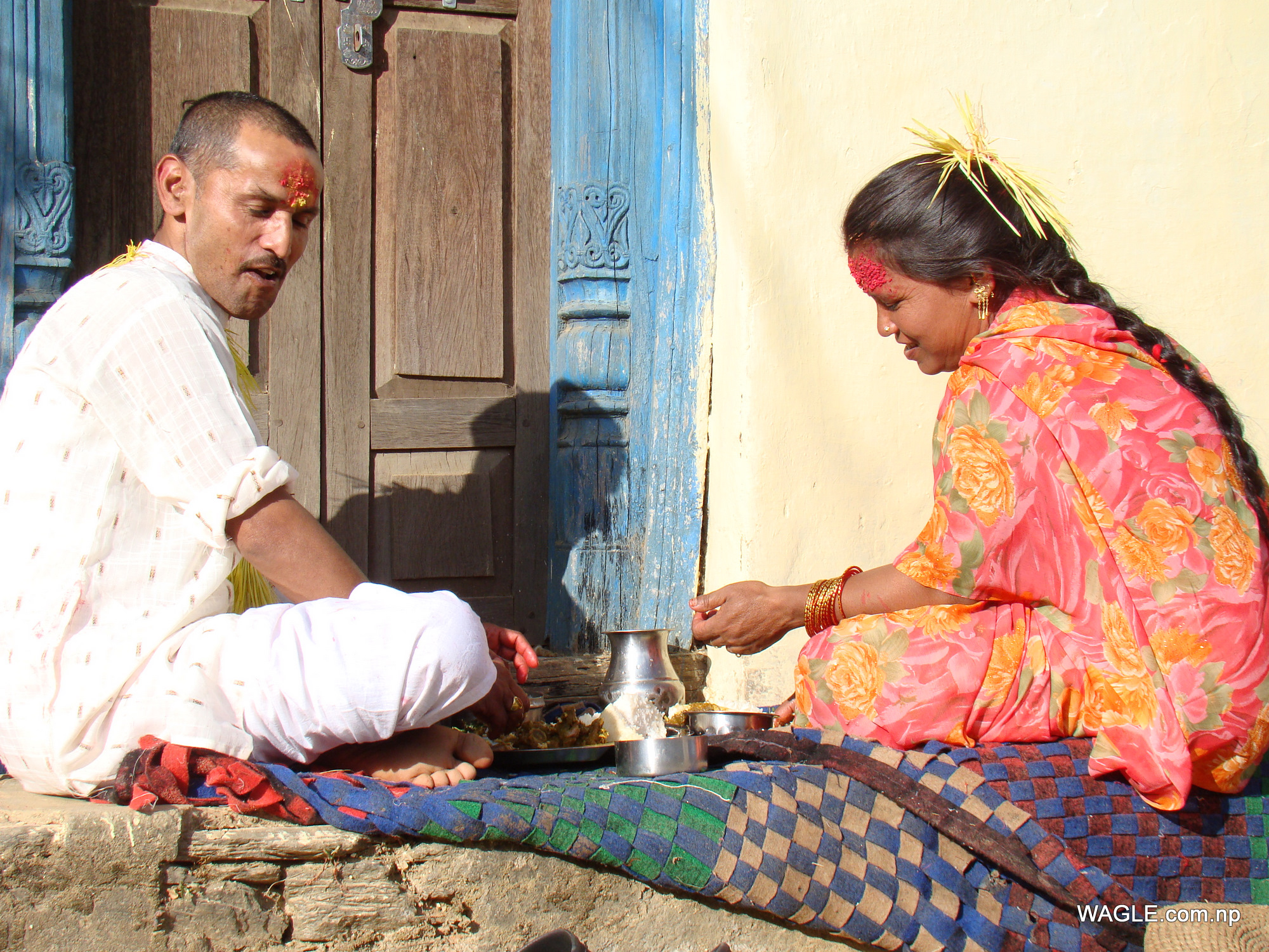 dadeldhura pair lunching on dashain tika day