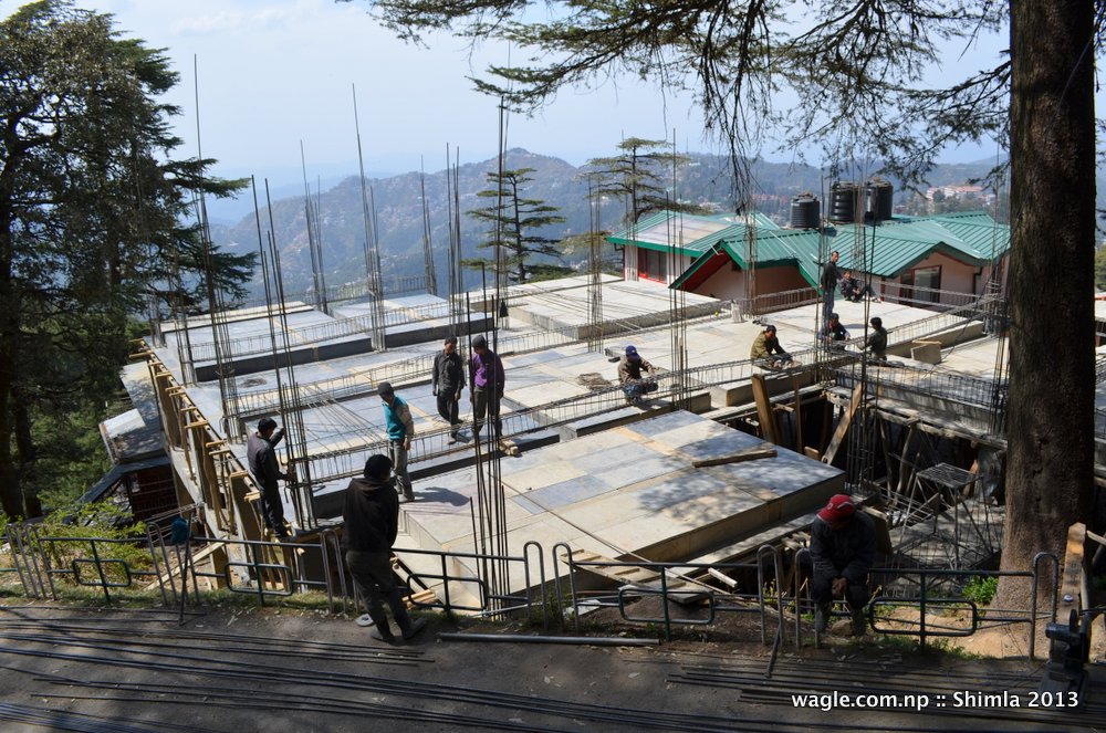 Nepali migrant workers constructing a building