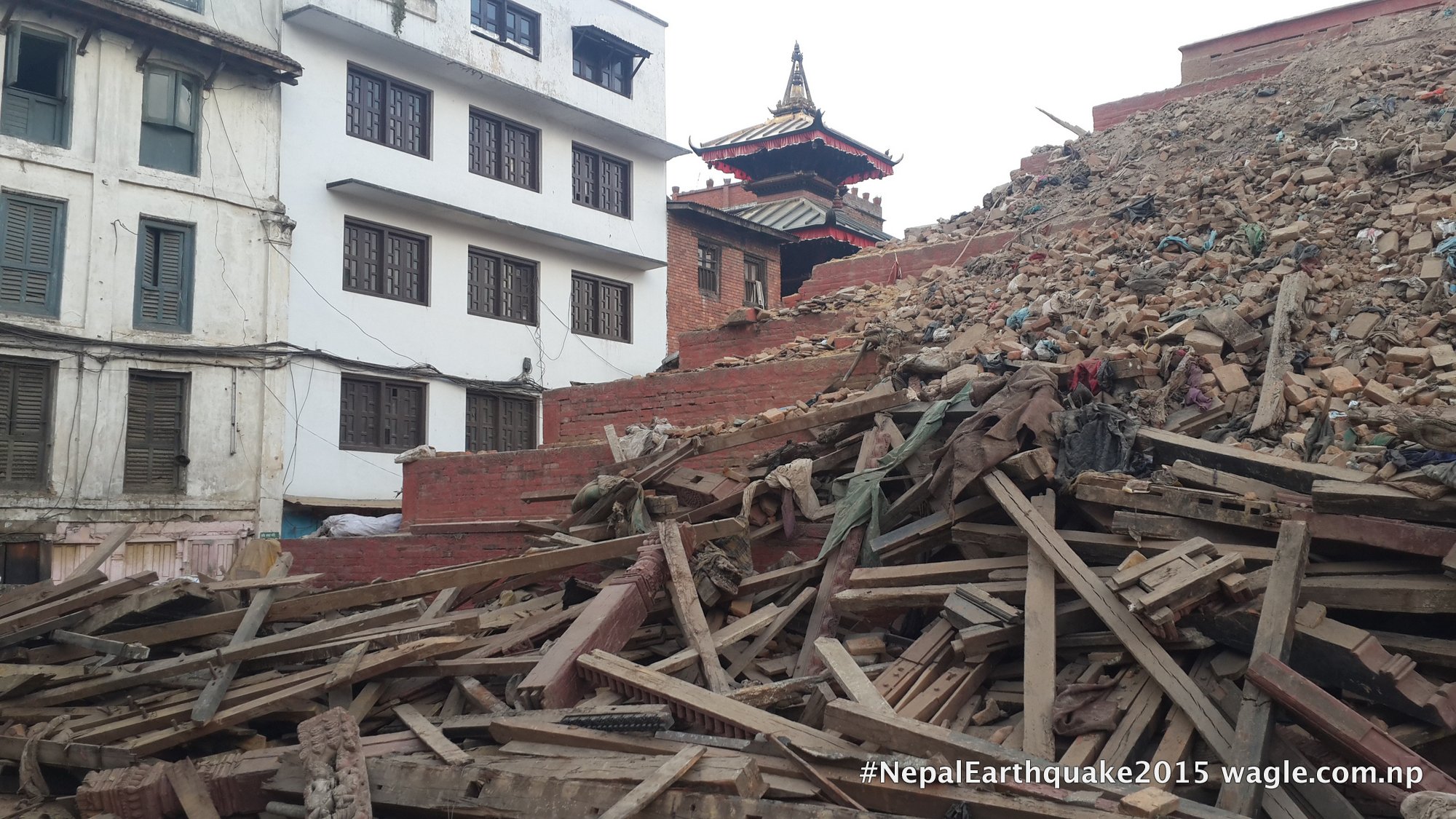 A day after the #NepalEarthquake, the rubble and woodcarvings from the fallen Maju Deval Temple in Kathmandu Darbar Square.